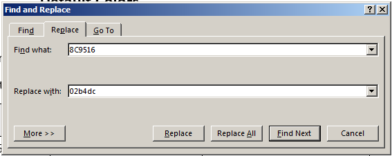 the primary color from the theme into the Find what box (i.e., 8C9516) and enter