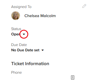 5) On the left side of the ticket page, click the Status down arrow.