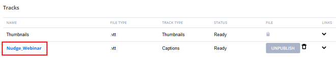 7) After a short time, the closed caption file will appear in the Tracks section.